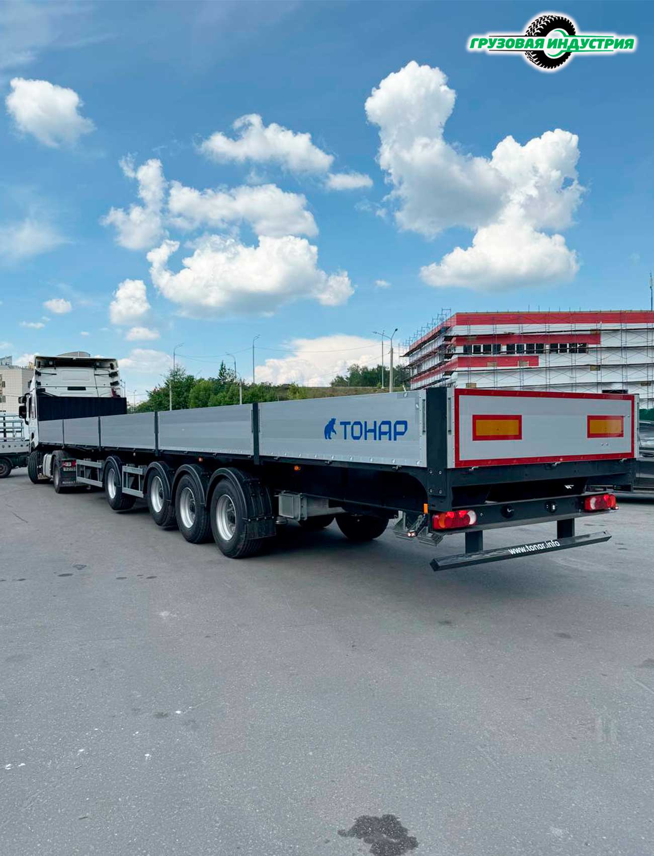 Отгрузка сцепки Renault 4x2 и полуприцепа бортовой платформы Тонар В4-16VК в г. Щёлково.